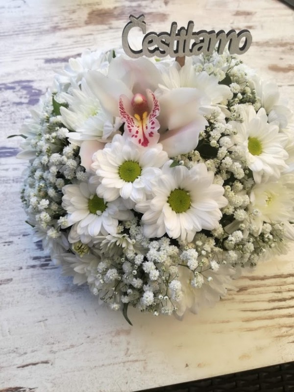 Aranžman mini- >Šlajer,Orhideja,Hriztantema.