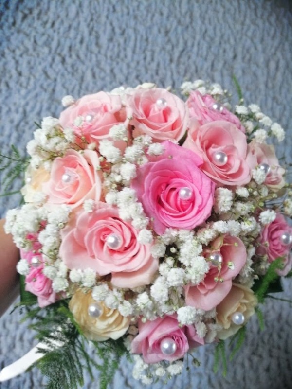 Bidermajer od ruza sa gipsofilom i propratnim zelenilom