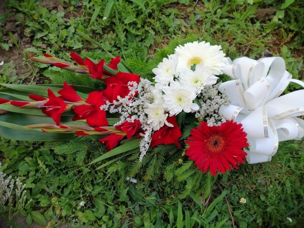 Buket Gladiola,Gerber,Hrizantema,Štatica sa propratnim zelenilom.
