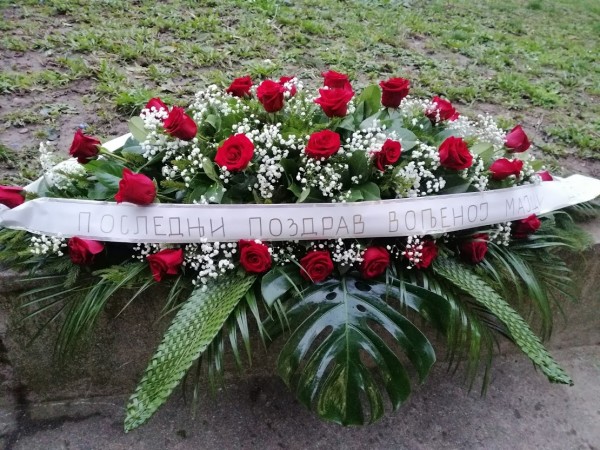 Ikebana Ruža,Šlajer,Palma,Mostera,pletena palma sa propratnim zelenilom