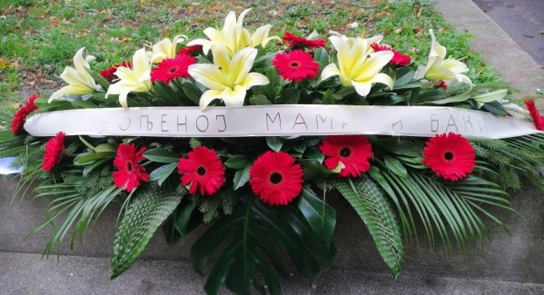 Ikebana Gerber,Kazablanka,Palma,pletena Palma sa propratnim zelenilom