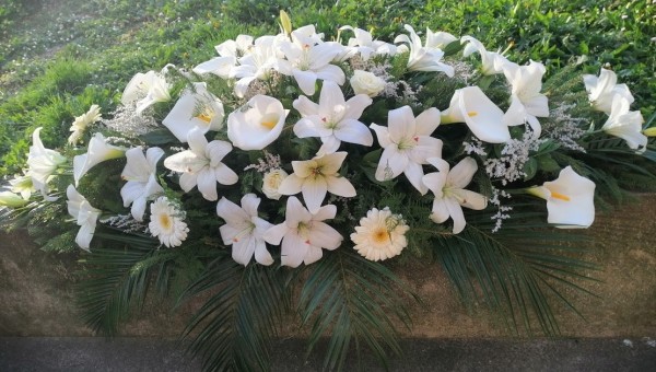 Ikebana Ljiljan,Kala,Gerber,Ruža sa propratnim zelenilom.