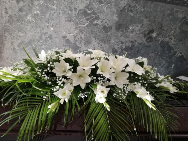 Ikebana ljiljan, šlajer,gladiola, palma sa propratnim zelenilom