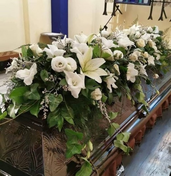 Ikebana Ljiljan,Lizijantus,Gladiola,Ruža,statica sa propratnim zelenilom