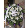 Venac beli Ljiljan i Ljubičasta Gladiola sa propratnim zelenilom,