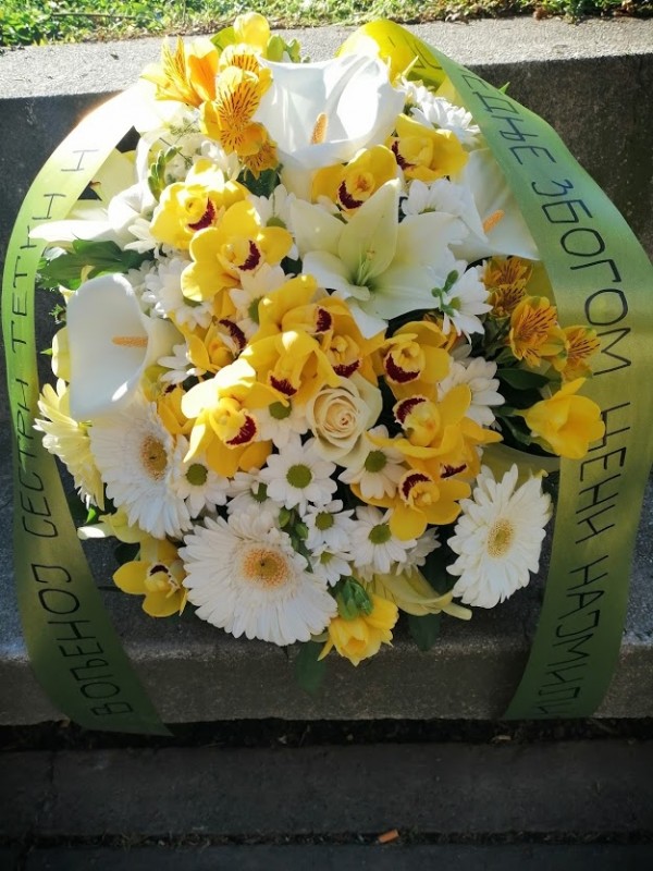 Venac Gerber,Orhideja,Margareta,Kala,Astromelija,Ljiljan i propratno zelenilo.