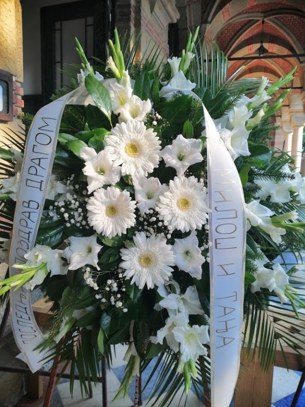 Venac od Gerbera i Gladiola sa propratnim zelenilom.