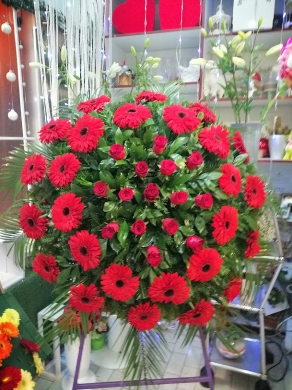 Venac Palma,Gerber;Ruže sa propratnim zelenilom