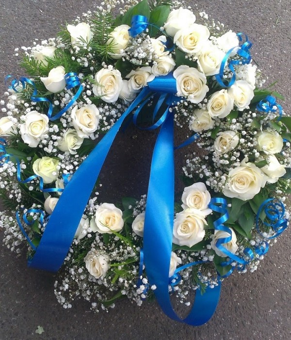 Šuplji venac bele Ruže sa propratnim zelenilom