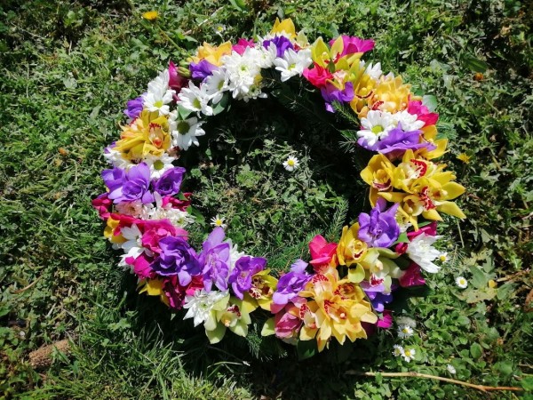 Šuplji venac Frezija,Orhideja,Hrizantema 50cm