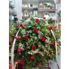 Venac crvene ruže sa propratnim zelenilom