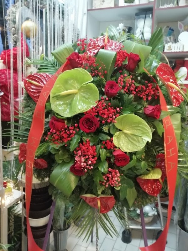 Venac Ruža,Anturium,Kordelina,Šlajer sa propratnim zelenilom